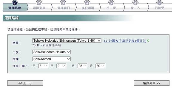 第一關、輸入路線、日期 (我跳過前的說明頁了)